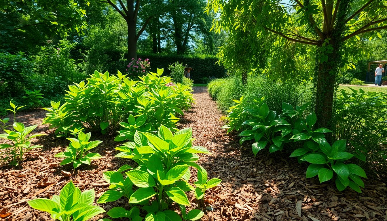 - Appliquer le paillis en couche uniforme, en évitant le contact direct avec les tiges des plantes